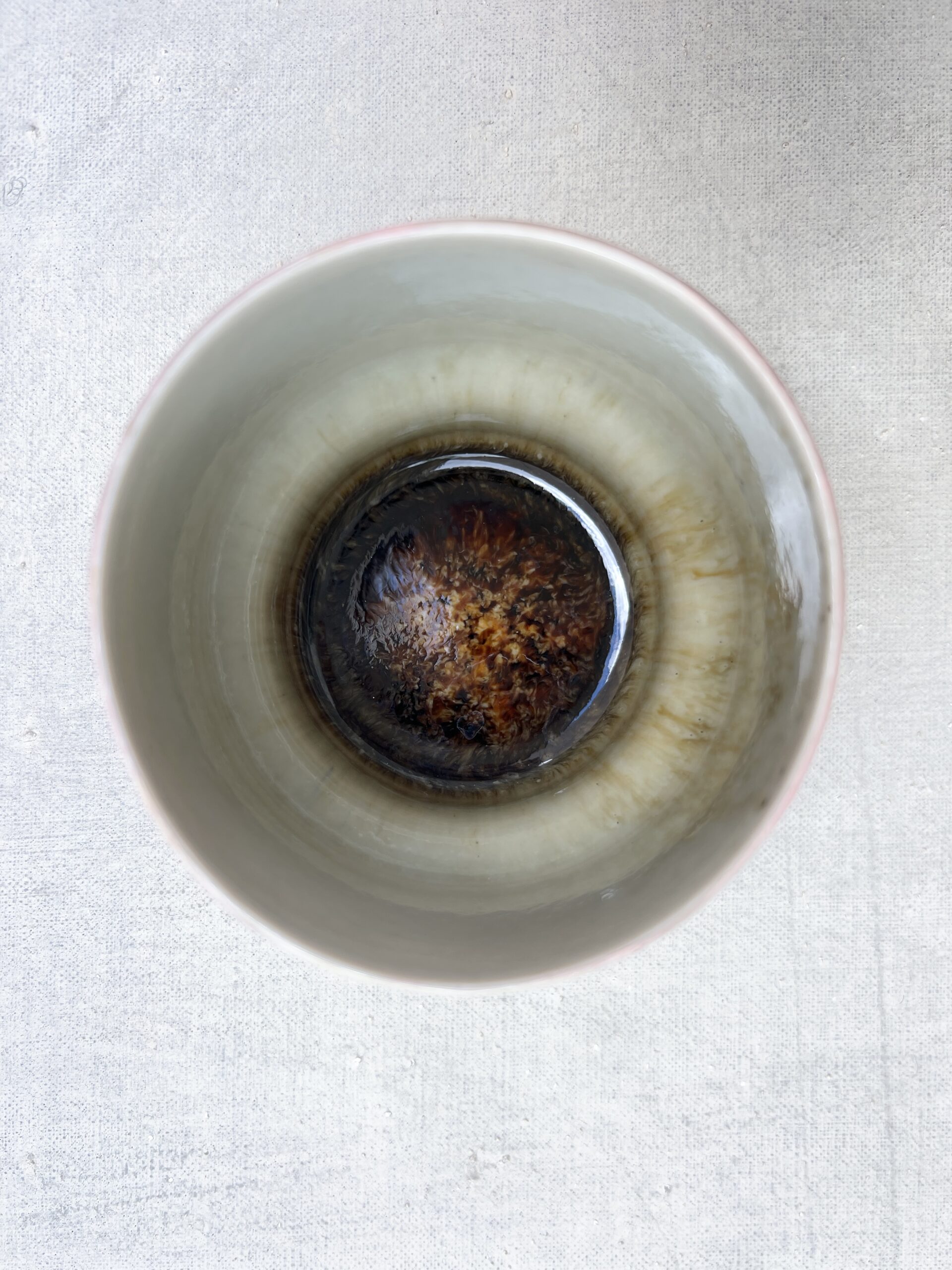 Czarka Słodycz wykonana jest z masy lejnej i pokryta z zewnątrz szkliwem w odcieniu delikatnego różu, natomiast jej wnętrze jest oliwkowe z efektem piasku. Pojemność 220 ml